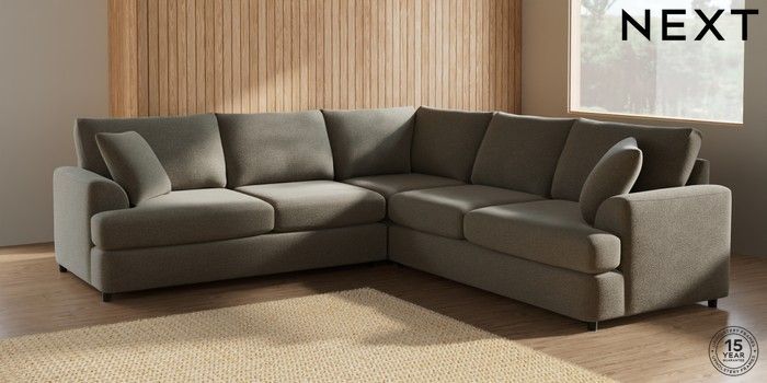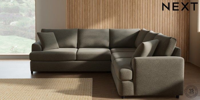 7.2.10 Parker Platform Medium Corner Sofa - Universal Chunky Marl Light Olive Green Glide | Made Click here to use our website with more accessibility support, for example screen readers