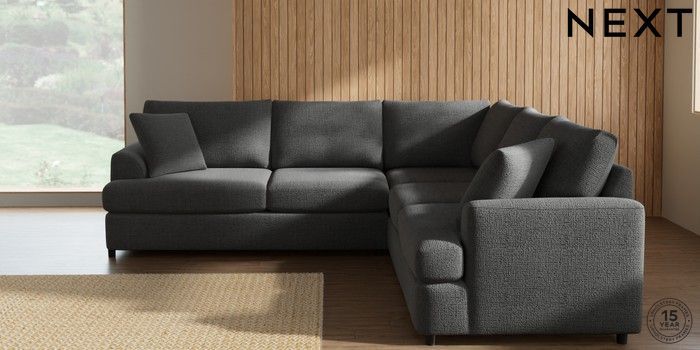 7.2.10 Parker Platform Medium Corner Sofa - Universal Chunky Texture Dark Grey Glide | Made Click here to use our website with more accessibility support, for example screen readers