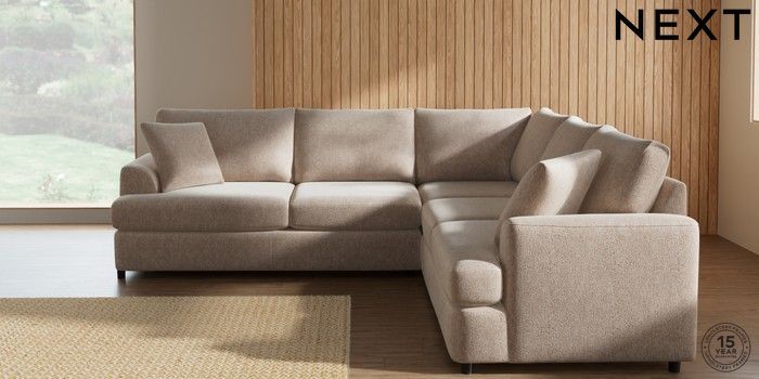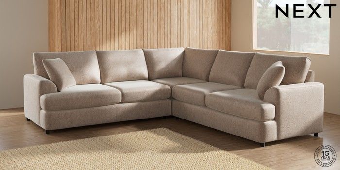 7.2.10 Parker Platform Medium Corner Sofa - Universal Cotswold Chenille Light Natural Glide | Made Click here to use our website with more accessibility support, for example screen readers