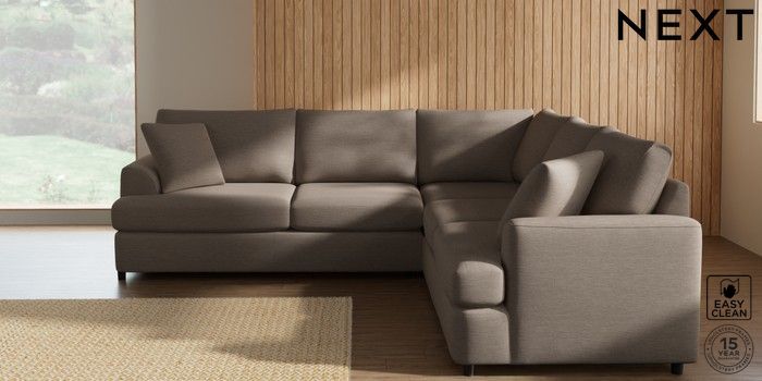 7.2.10 Parker Platform Medium Corner Sofa - Universal Fine Chenille Easy Clean Mid Taupe Brown Glide | Made Click here to use our website with more accessibility support, for example screen readers