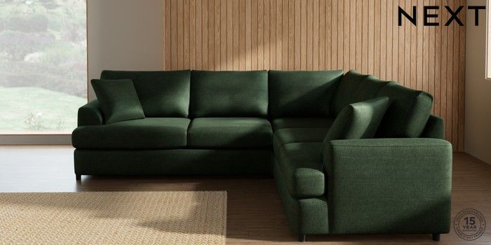 7.2.10 Parker Platform Medium Corner Sofa - Universal Luxe Chenille Dark Green Glide | Made Click here to use our website with more accessibility support, for example screen readers