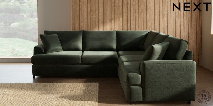 7.2.10 Parker Platform Medium Corner Sofa - Universal Luxe Chenille Mid Green Glide | Made Click here to use our website with more accessibility support, for example screen readers