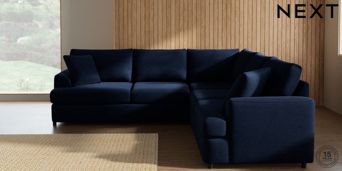 7.2.10 Parker Platform Medium Corner Sofa - Universal Luxe Chenille Navy Blue Glide | Made Click here to use our website with more accessibility support, for example screen readers