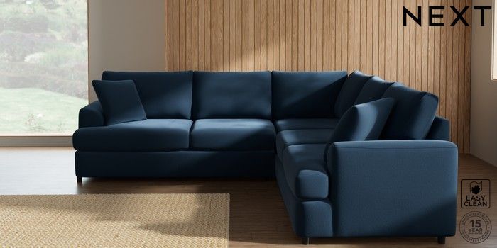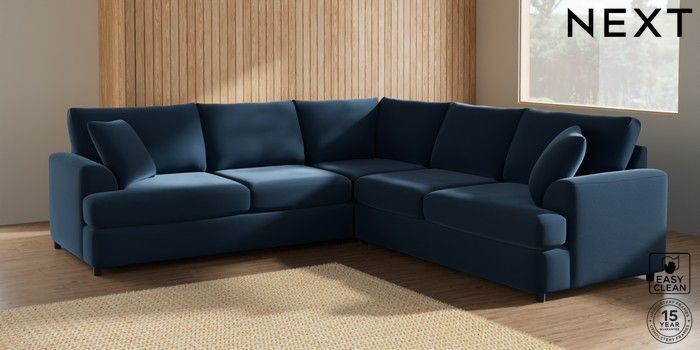 7.2.10 Parker Platform Medium Corner Sofa - Universal Plush Velvet Easy Clean Airforce Blue Glide | Made Click here to use our website with more accessibility support, for example screen readers