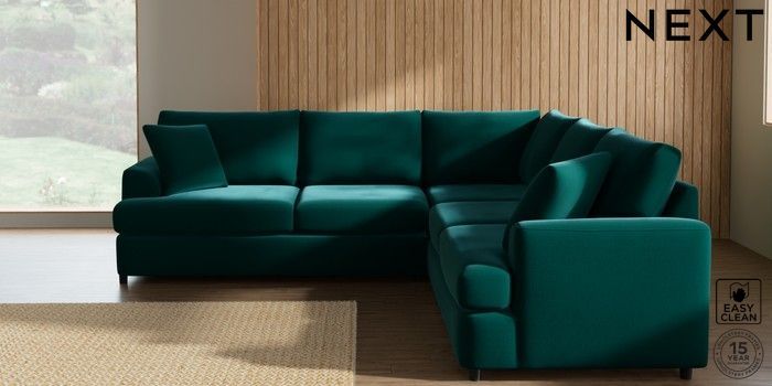 7.2.10 Parker Platform Medium Corner Sofa - Universal Plush Velvet Easy Clean Juniper Green Glide | Made Click here to use our website with more accessibility support, for example screen readers