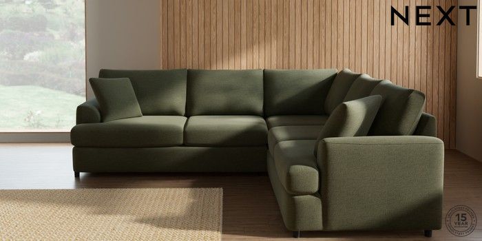 7.2.10 Parker Platform Medium Corner Sofa - Universal Ripple Chenille Mid Moss Green Glide | Made Click here to use our website with more accessibility support, for example screen readers
