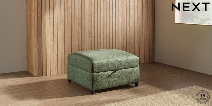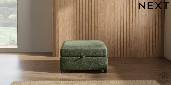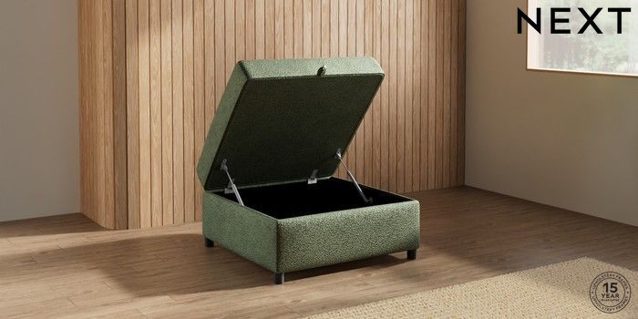 7.2.10 Parker Platform Storage Footstool Boucle Chenille Dark Moss Green Glide | Made Click here to use our website with more accessibility support, for example screen readers