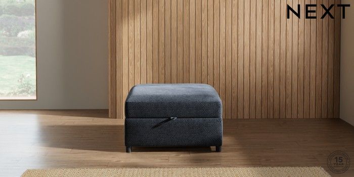 7.2.10 Parker Platform Storage Footstool Boucle Chenille Dark Slate Blue Glide | Made Click here to use our website with more accessibility support, for example screen readers