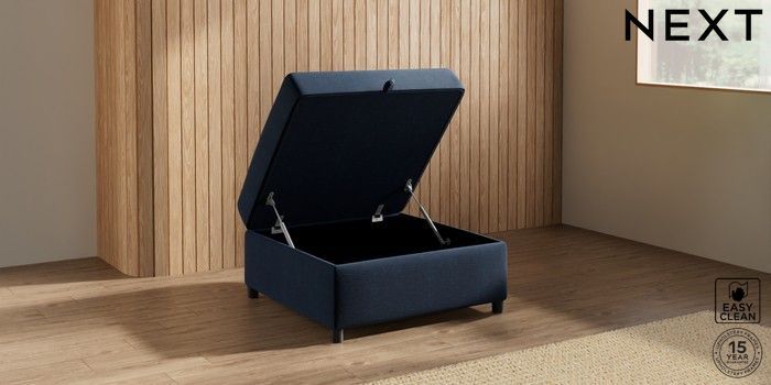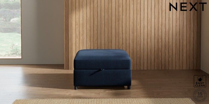 7.2.10 Parker Platform Storage Footstool Fine Chenille Easy Clean Dark Navy Blue Glide | Made Click here to use our website with more accessibility support, for example screen readers