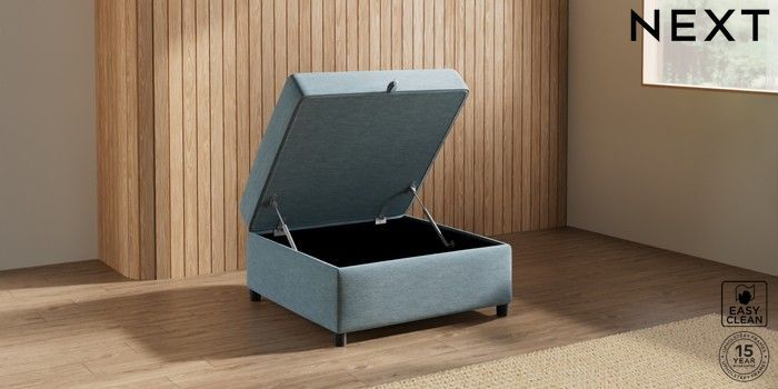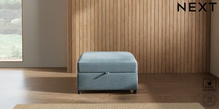 7.2.10 Parker Platform Storage Footstool Fine Chenille Easy Clean Mid Blue Glide | Made Click here to use our website with more accessibility support, for example screen readers