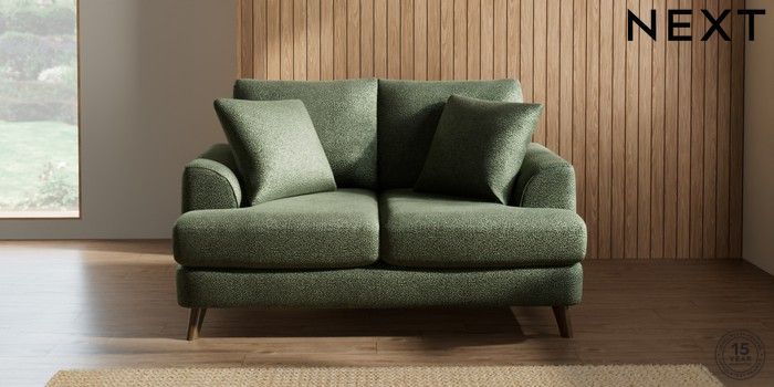 7.2.10 Parker 2 Seater Small Sofa Boucle Chenille Dark Moss Green Low Retro Tapered - Mid | Made Click here to use our website with more accessibility support, for example screen readers