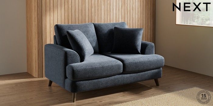 7.2.10 Parker 2 Seater Small Sofa Boucle Chenille Dark Slate Blue Low Retro Tapered - Mid | Made Click here to use our website with more accessibility support, for example screen readers