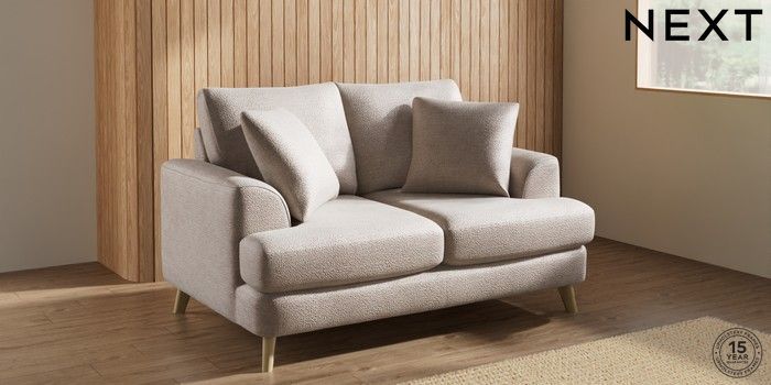 7.2.10 Parker 2 Seater Small Sofa Boucle Chenille Light Natural Low Retro Tapered - Light | Made Click here to use our website with more accessibility support, for example screen readers