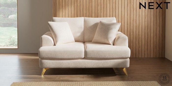 7.2.10 Parker 2 Seater Small Sofa Boucle Chenille Oyster High Metal - Brass | Made Click here to use our website with more accessibility support, for example screen readers