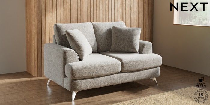 7.2.10 Parker 2 Seater Small Sofa Chunky Boucle Easy Clean Dove High Metal - Chrome | Made Click here to use our website with more accessibility support, for example screen readers
