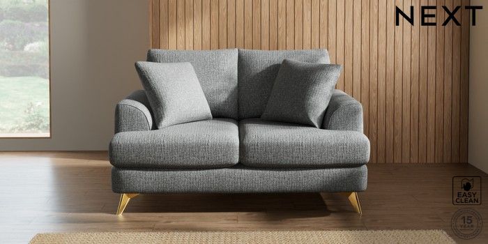 7.2.10 Parker 2 Seater Small Sofa Chunky Boucle Easy Clean Mid Grey High Metal - Brass | Made Click here to use our website with more accessibility support, for example screen readers