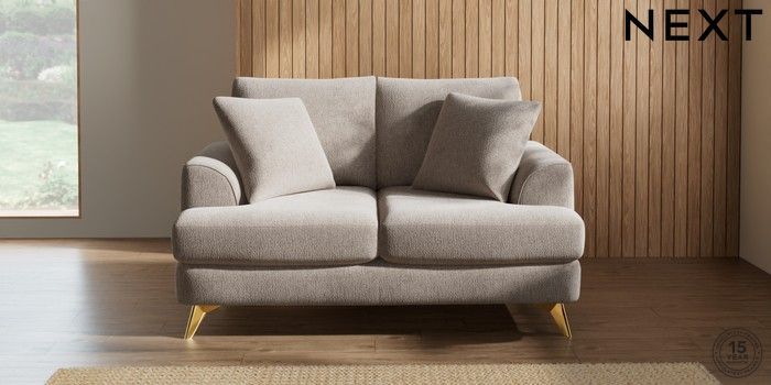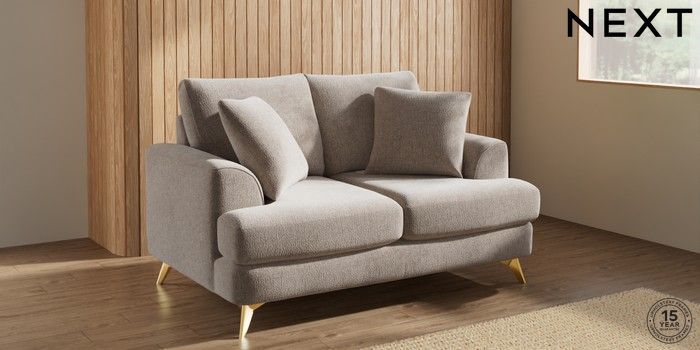 7.2.10 Parker 2 Seater Small Sofa Chunky Chenille Light Dove High Metal - Brass | Made Click here to use our website with more accessibility support, for example screen readers