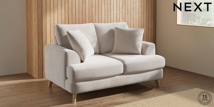 7.2.10 Parker 2 Seater Small Sofa Chunky Chenille Oyster Low Retro Tapered - Light | Made Click here to use our website with more accessibility support, for example screen readers