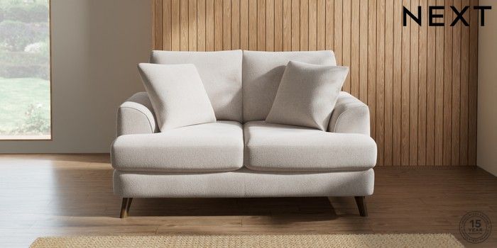 7.2.10 Parker 2 Seater Small Sofa Chunky Chenille Oyster Low Retro Tapered - Mid | Made Click here to use our website with more accessibility support, for example screen readers