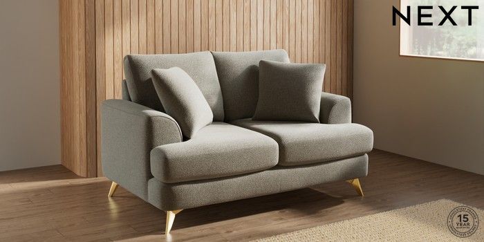 7.2.10 Parker 2 Seater Small Sofa Chunky Marl Light Olive Green High Metal - Brass | Made Click here to use our website with more accessibility support, for example screen readers
