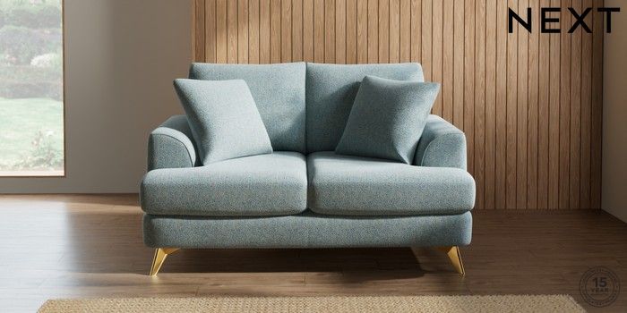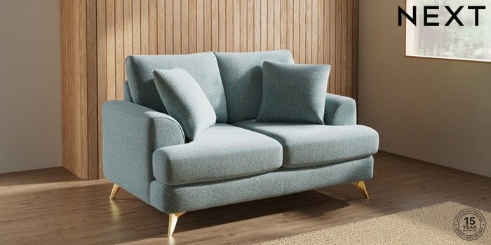 7.2.10 Parker 2 Seater Small Sofa Chunky Marl Mid Blue High Metal - Brass | Made Click here to use our website with more accessibility support, for example screen readers