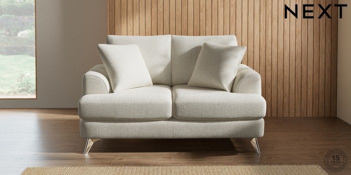 7.2.10 Parker 2 Seater Small Sofa Chunky Texture Oyster High Metal - Chrome | Made Click here to use our website with more accessibility support, for example screen readers