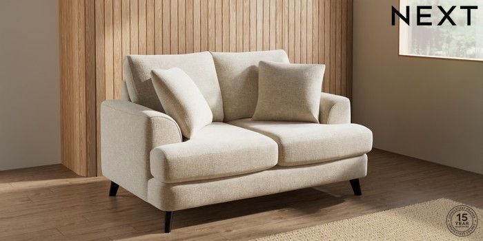 7.2.10 Parker 2 Seater Small Sofa Chunky Weave Cream Low Retro Tapered - Dark | Made Click here to use our website with more accessibility support, for example screen readers