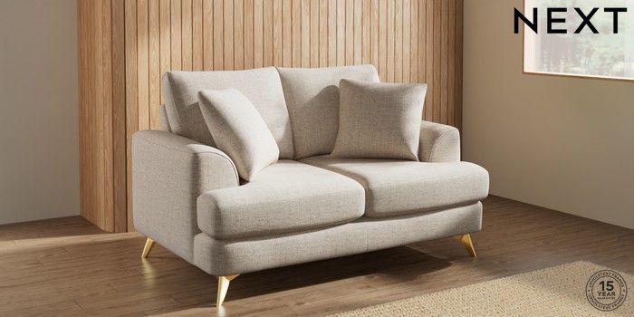7.2.10 Parker 2 Seater Small Sofa Chunky Weave Mid Natural High Metal - Brass | Made Click here to use our website with more accessibility support, for example screen readers
