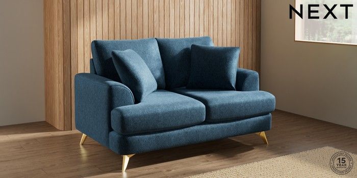 7.2.10 Parker 2 Seater Small Sofa Cotswold Chenille Dark Blue High Metal - Brass | Made Click here to use our website with more accessibility support, for example screen readers
