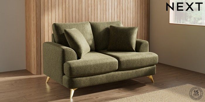 7.2.10 Parker 2 Seater Small Sofa Cotswold Chenille Dark Green High Metal - Brass | Made Click here to use our website with more accessibility support, for example screen readers