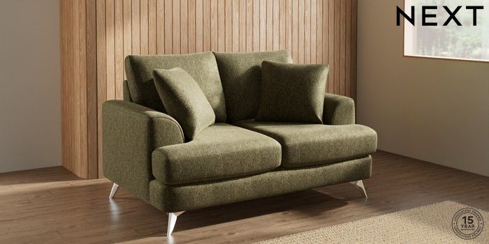 7.2.10 Parker 2 Seater Small Sofa Cotswold Chenille Dark Green High Metal - Chrome | Made Click here to use our website with more accessibility support, for example screen readers