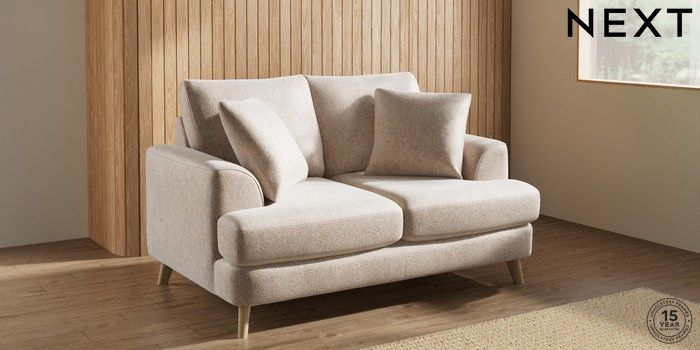 7.2.10 Parker 2 Seater Small Sofa Cotswold Chenille Light Natural Low Retro Tapered - Light | Made Click here to use our website with more accessibility support, for example screen readers