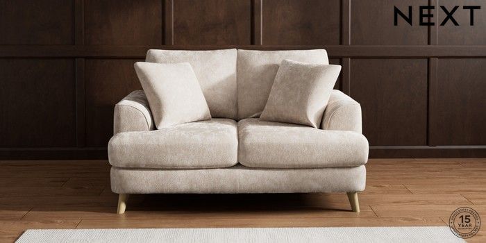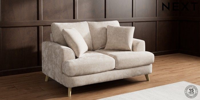 7.2.10 Parker 2 Seater Small Sofa Distressed Velour Mid Natural Low Retro Tapered - Light | Made Click here to use our website with more accessibility support, for example screen readers