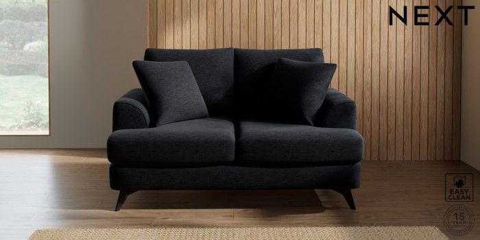 7.2.10 Parker 2 Seater Small Sofa Fine Chenille Easy Clean Black High Metal - Black | Made Click here to use our website with more accessibility support, for example screen readers