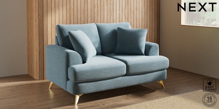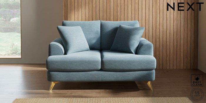 7.2.10 Parker 2 Seater Small Sofa Fine Chenille Easy Clean Mid Blue High Metal - Brass | Made Click here to use our website with more accessibility support, for example screen readers