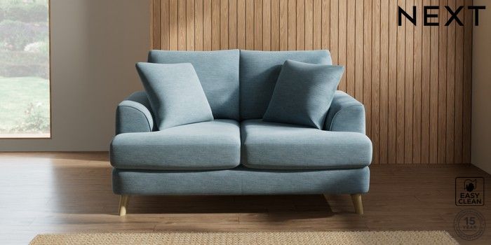 7.2.10 Parker 2 Seater Small Sofa Fine Chenille Easy Clean Mid Blue Low Retro Tapered - Light | Made Click here to use our website with more accessibility support, for example screen readers