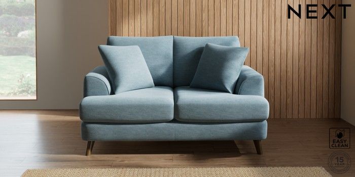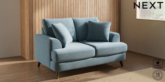 7.2.10 Parker 2 Seater Small Sofa Fine Chenille Easy Clean Mid Blue Low Retro Tapered - Mid | Made Click here to use our website with more accessibility support, for example screen readers