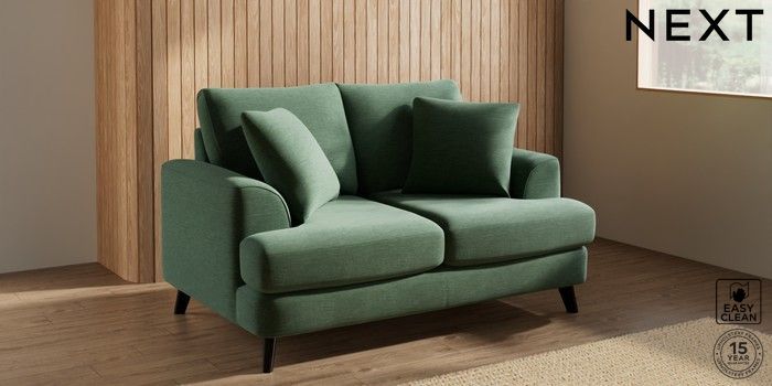 7.2.10 Parker 2 Seater Small Sofa Fine Chenille Easy Clean Mid Khaki Green Low Retro Tapered - Dark | Made Click here to use our website with more accessibility support, for example screen readers