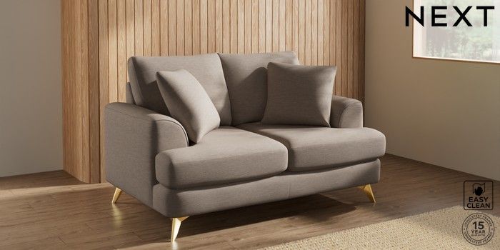 7.2.10 Parker 2 Seater Small Sofa Fine Chenille Easy Clean Mid Taupe Brown High Metal - Brass | Made Click here to use our website with more accessibility support, for example screen readers