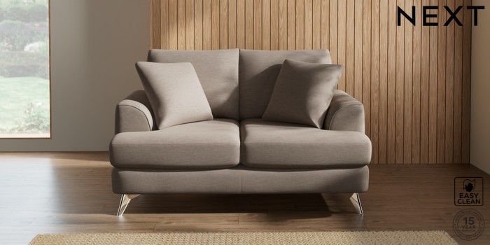 7.2.10 Parker 2 Seater Small Sofa Fine Chenille Easy Clean Mid Taupe Brown High Metal - Chrome | Made Click here to use our website with more accessibility support, for example screen readers