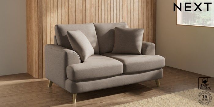 7.2.10 Parker 2 Seater Small Sofa Fine Chenille Easy Clean Mid Taupe Brown Low Retro Tapered - Light | Made Click here to use our website with more accessibility support, for example screen readers