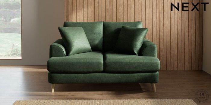 7.2.10 Parker 2 Seater Small Sofa Luxe Chenille Dark Green Low Retro Tapered - Light | Made Click here to use our website with more accessibility support, for example screen readers
