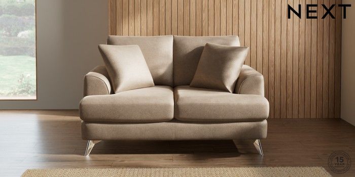 7.2.10 Parker 2 Seater Small Sofa Luxe Chenille Mid Camel Beige High Metal - Chrome | Made Click here to use our website with more accessibility support, for example screen readers