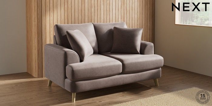 7.2.10 Parker 2 Seater Small Sofa Luxe Chenille Mink Brown Low Retro Tapered - Light | Made Click here to use our website with more accessibility support, for example screen readers
