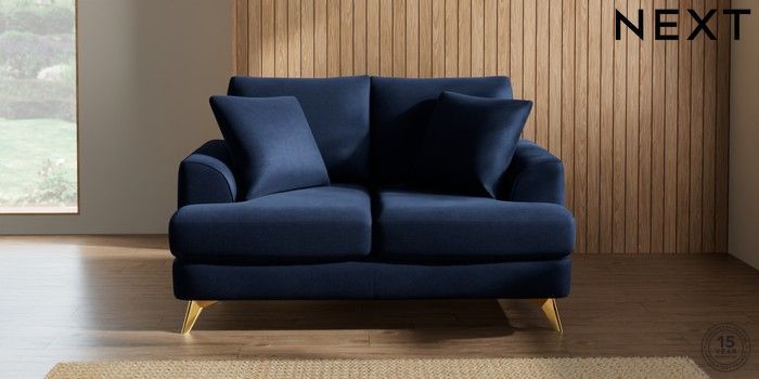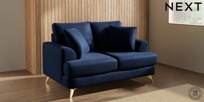 7.2.10 Parker 2 Seater Small Sofa Luxe Chenille Navy Blue High Metal - Brass | Made Click here to use our website with more accessibility support, for example screen readers