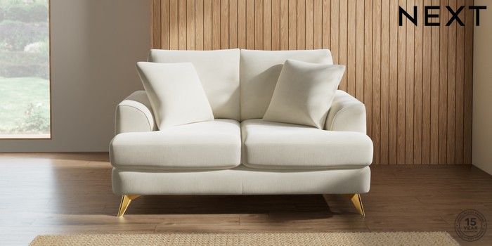 7.2.10 Parker 2 Seater Small Sofa Luxe Chenille Oyster High Metal - Brass | Made Click here to use our website with more accessibility support, for example screen readers