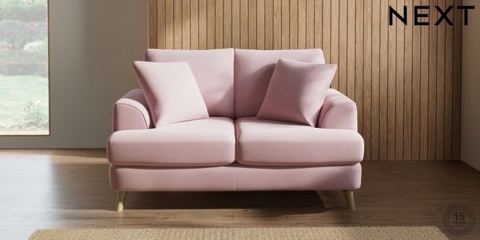 7.2.10 Parker 2 Seater Small Sofa Natural Mix Light Rose Pink Low Retro Tapered - Light | Made Click here to use our website with more accessibility support, for example screen readers