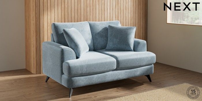 7.2.10 Parker 2 Seater Small Sofa Plush Chenille Light Blue High Metal - Black | Made Click here to use our website with more accessibility support, for example screen readers