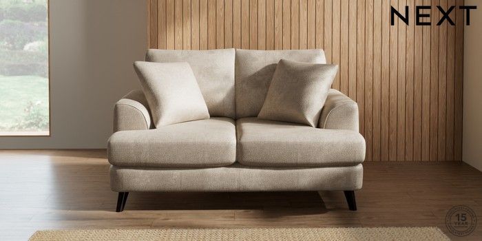 7.2.10 Parker 2 Seater Small Sofa Plush Chenille Light Natural Low Retro Tapered - Dark | Made Click here to use our website with more accessibility support, for example screen readers