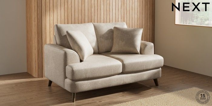 7.2.10 Parker 2 Seater Small Sofa Plush Chenille Light Natural Low Retro Tapered - Mid | Made Click here to use our website with more accessibility support, for example screen readers